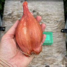 ON SALE – Stored from 2022’s shallot harvest. These pink beauties might be ever so slightly past their prime but still tasty as ever.